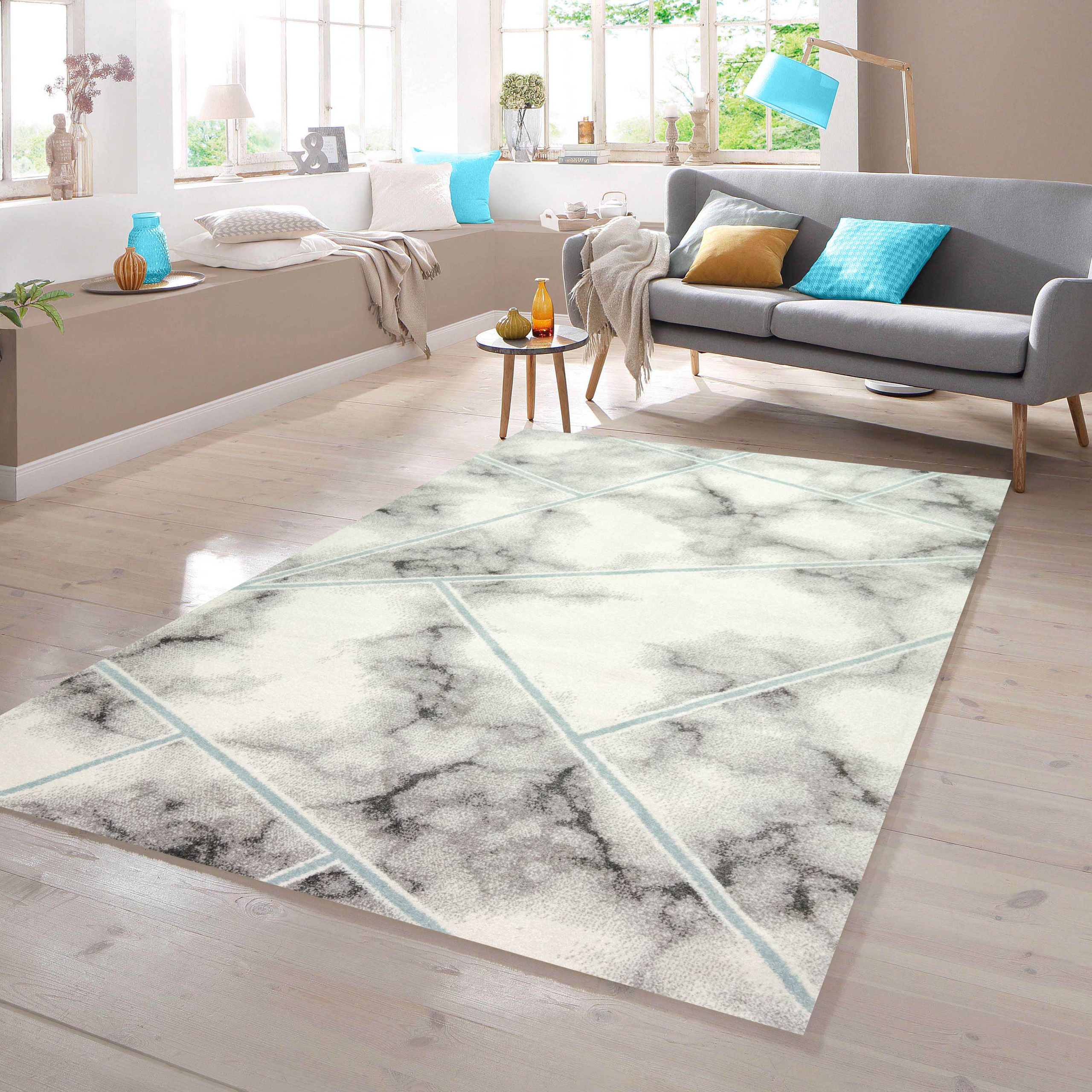 Teppich Farbe: blau grau creme