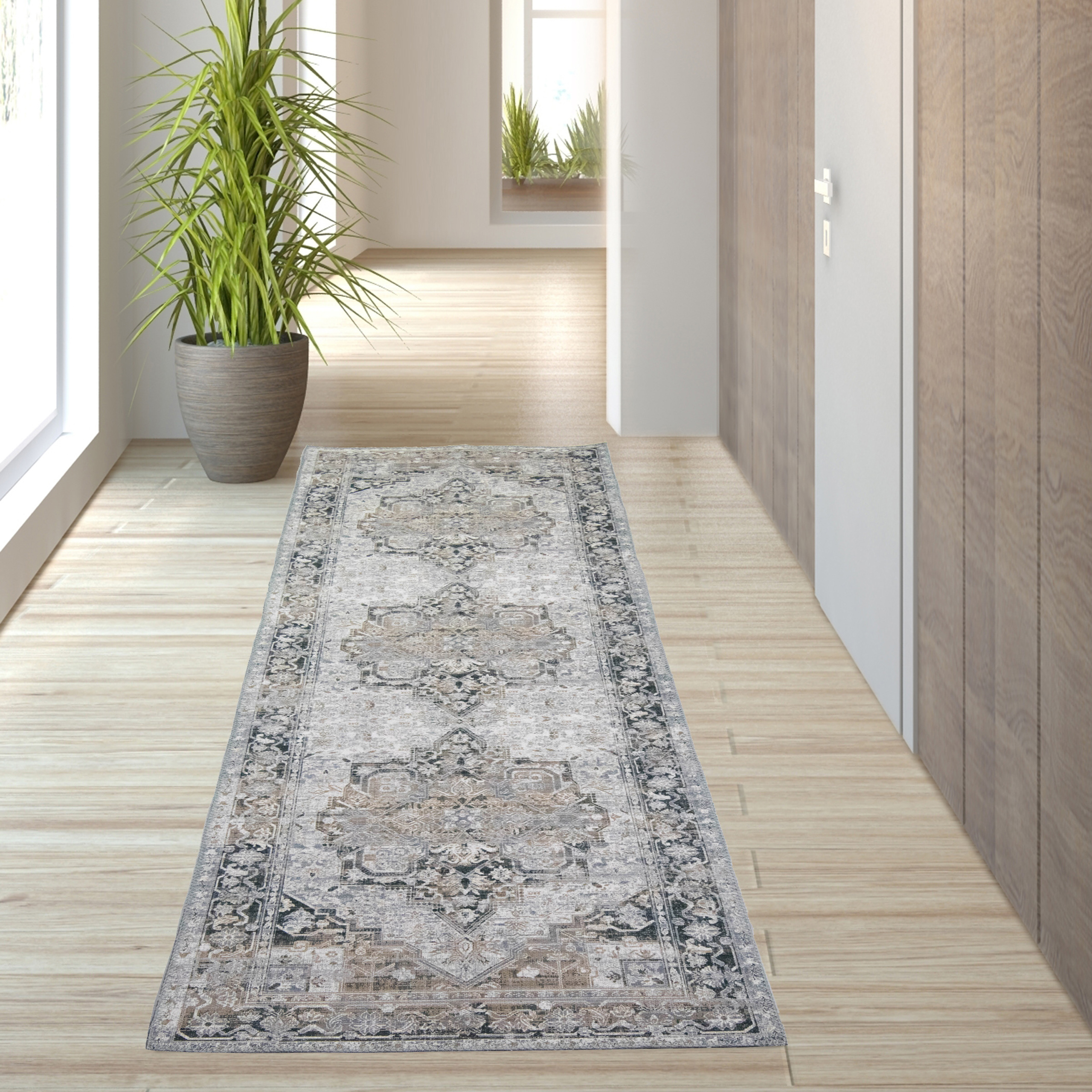 Der maschinell gefertigte Outdoor Teppich im Vintage Design, bietet eine elegante Optik, die das Wohnambiente dezent unterstreicht. Zudem ist er aus schmutzabweisendem Material gefertigt und sehr strapazierfähig. Die pflegeleichte und allergikerfreundliche Eigenschaft macht den Teppich zu einem alltagstauglichen Wohnaccessoire. Der Wohnzimmerteppich ist auch für Böden mit integrierter Fußbodenheizung geeignet.