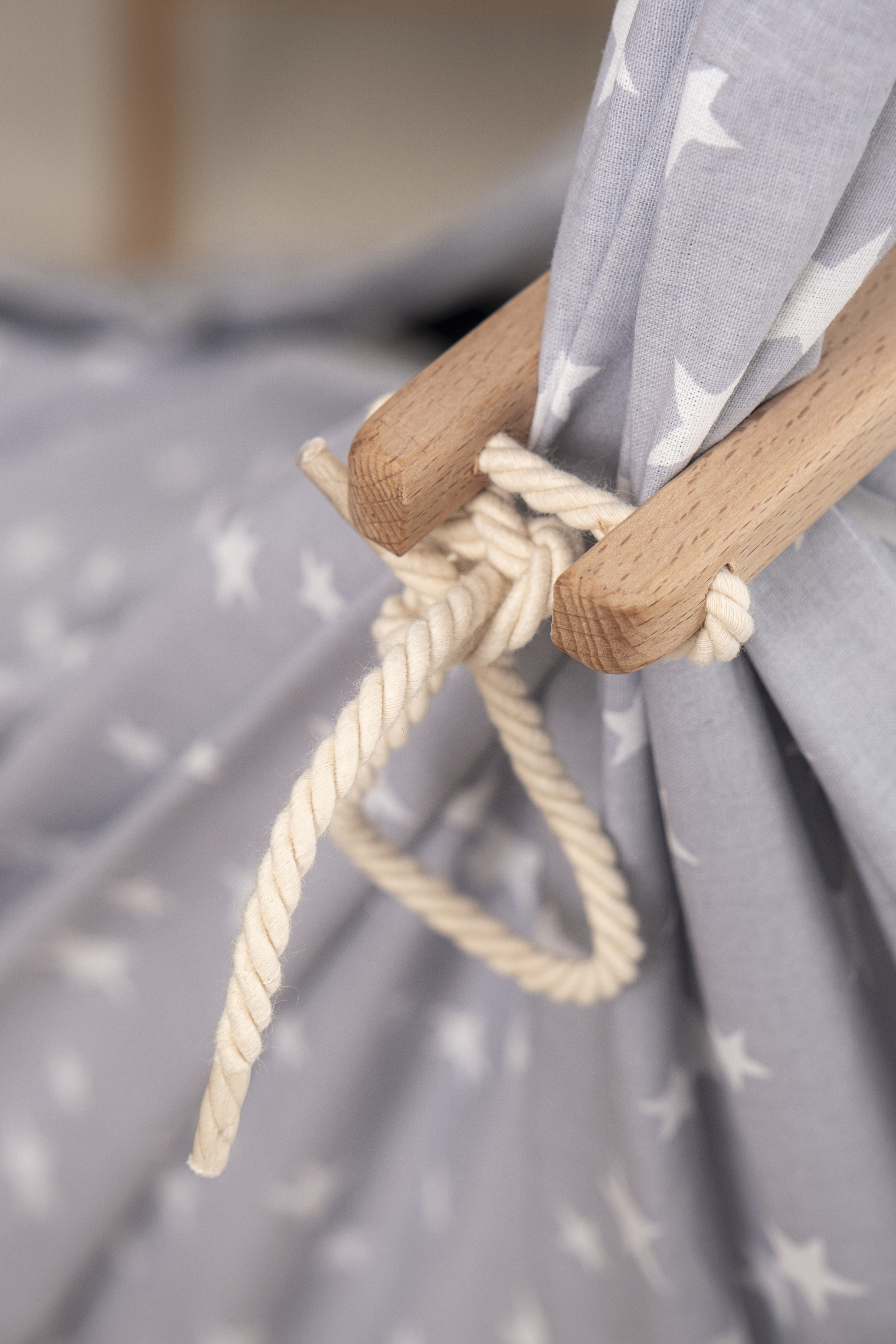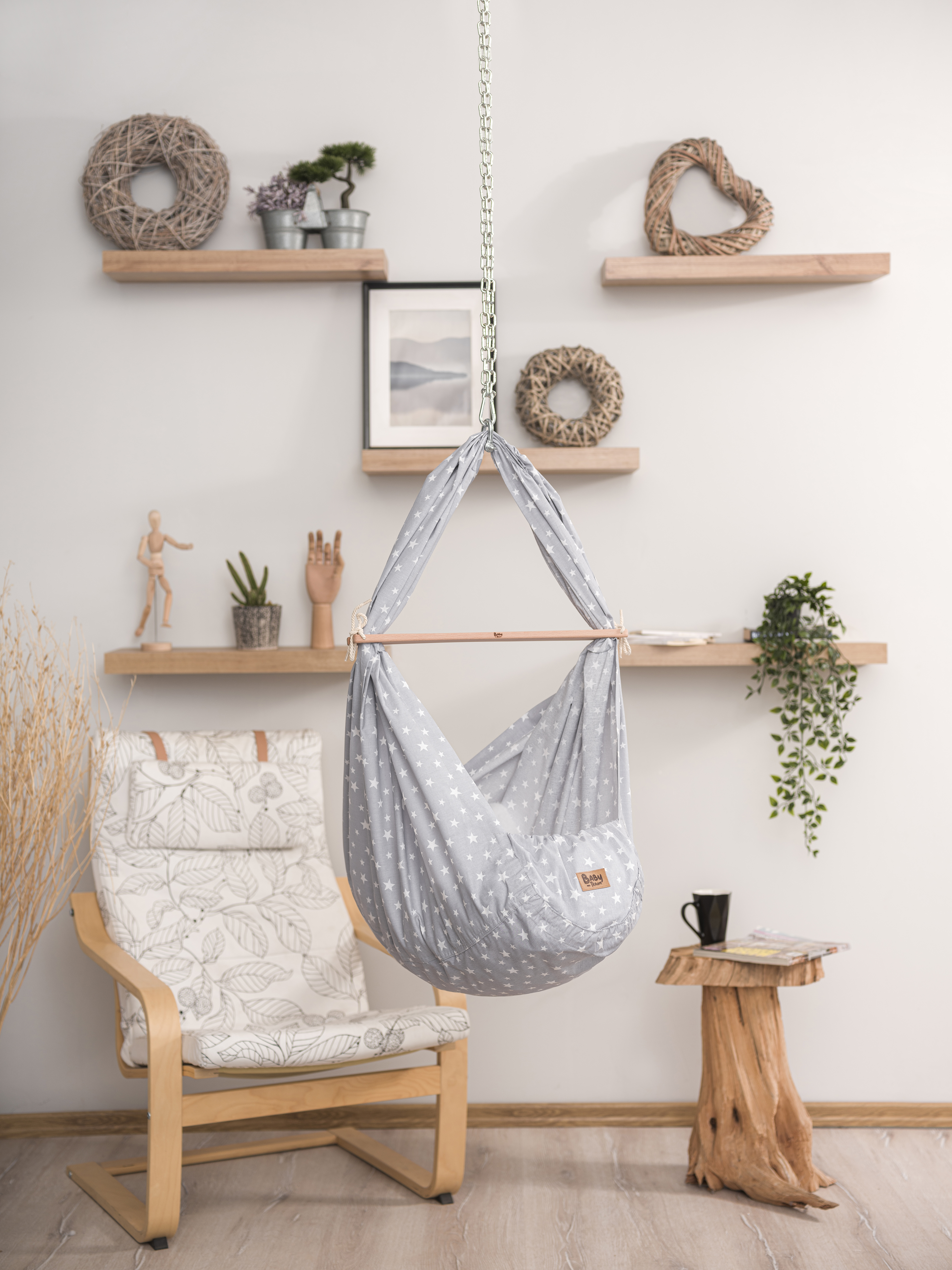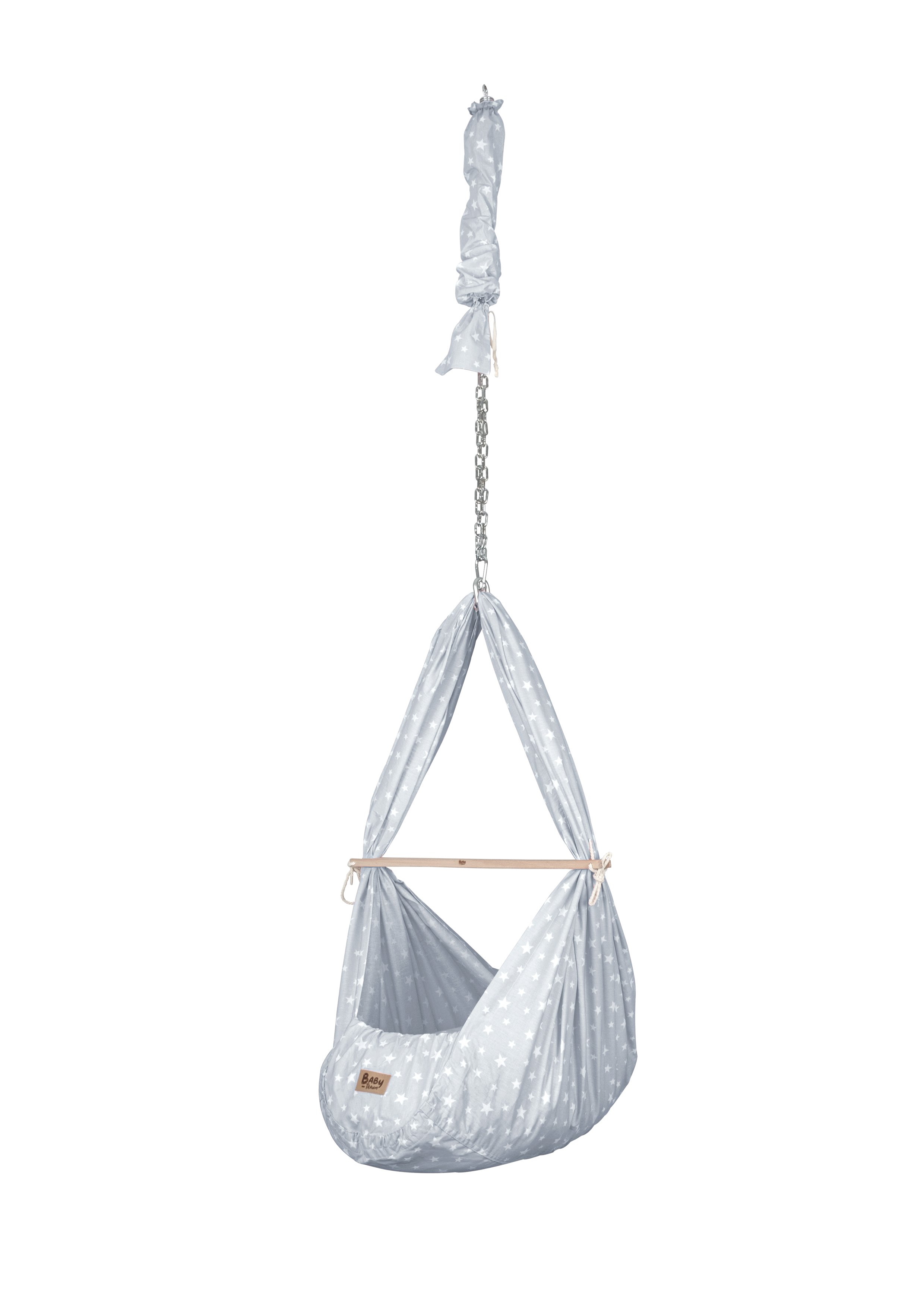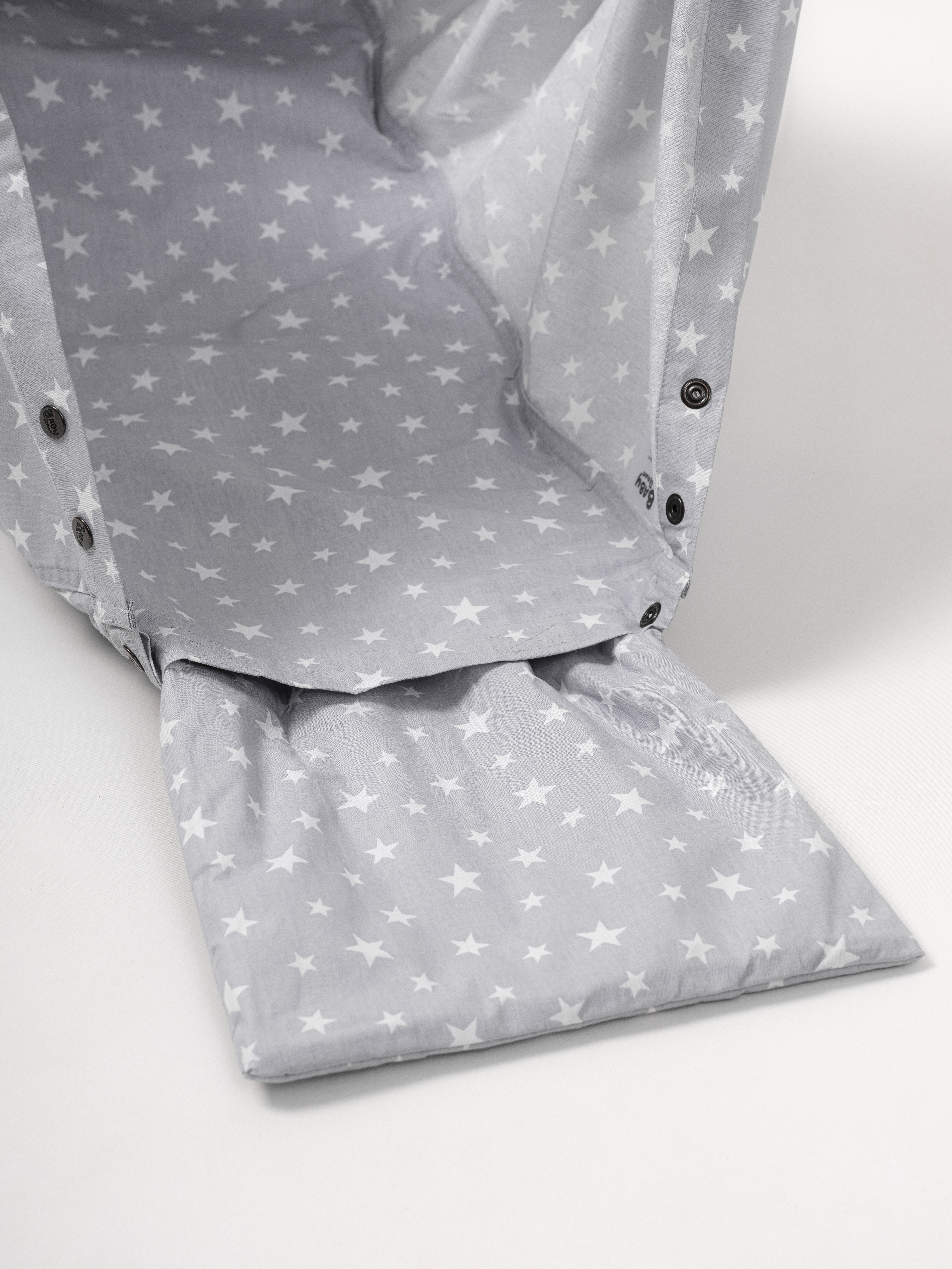Baby Federwiege Komplett Set in weiße Sterne grau