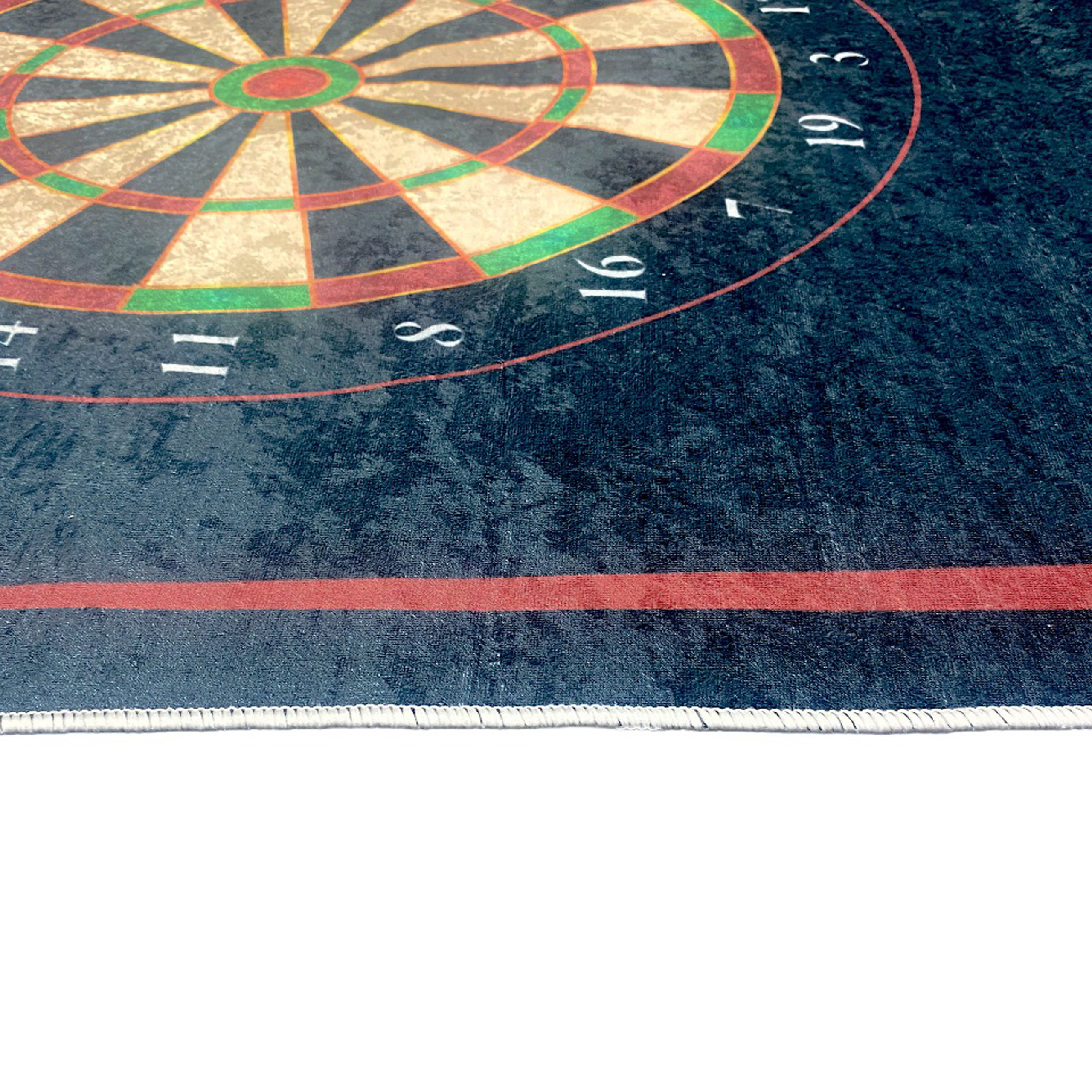 Am Ende des Teppichs ist eine hochwertige Dartscheibe aufgedruckt. Sie können Ihre Pfeile auf das Ziel werfen, ohne sich Gedanken über Schäden am Boden oder anderen Oberflächen machen zu müssen. Die Dartscheibe ist deutlich erkennbar und sorgt für ein authentisches Spielerlebnis.