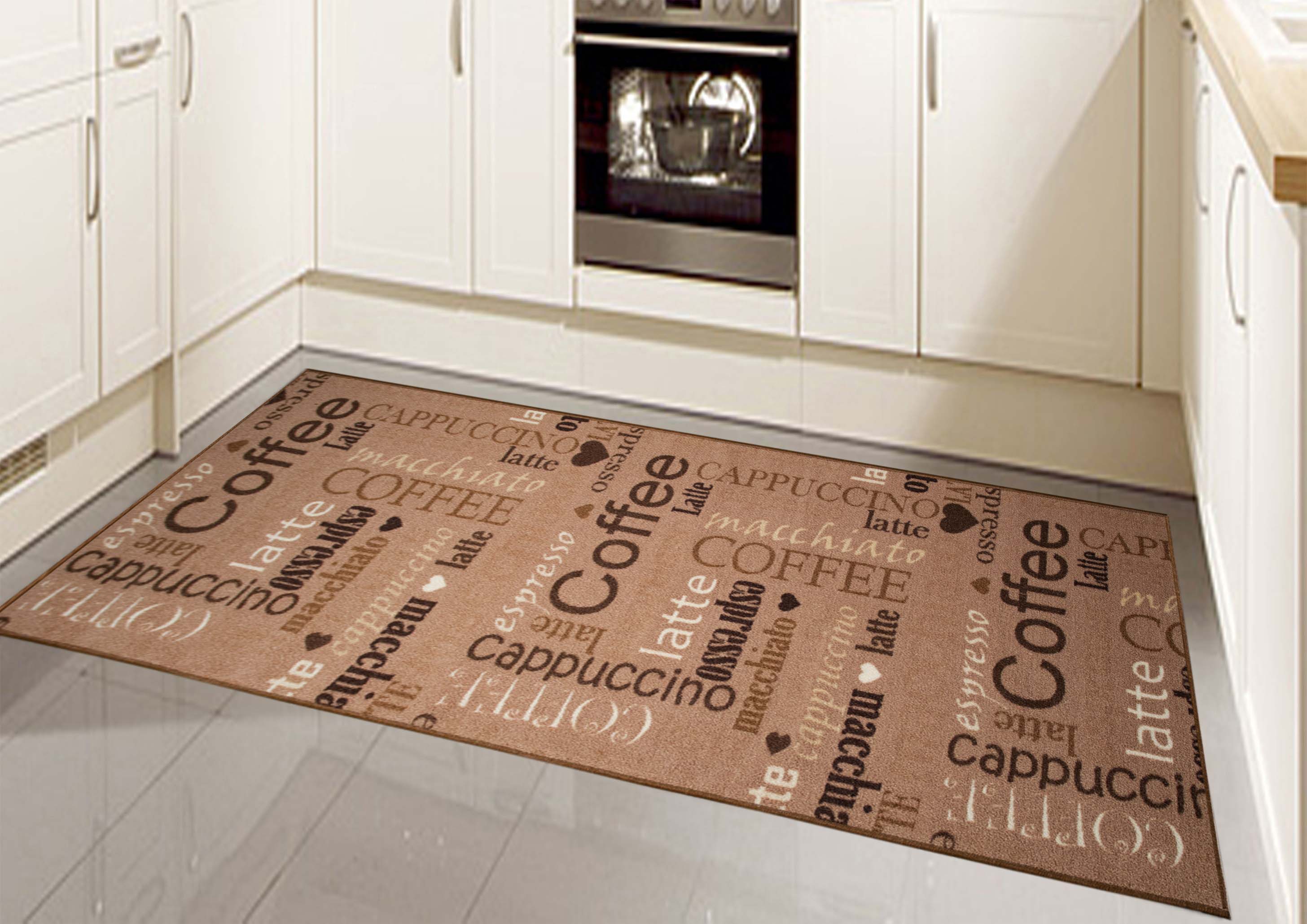 Durch das pflegeleichte Eigenschaft des Material aus 100 % Polypropylen ist der Küchenläufer sehr widerstandsfähig. Deshalb kann er auch in Bereichen liegen, in denen viel gelaufen oder gegessen wird.