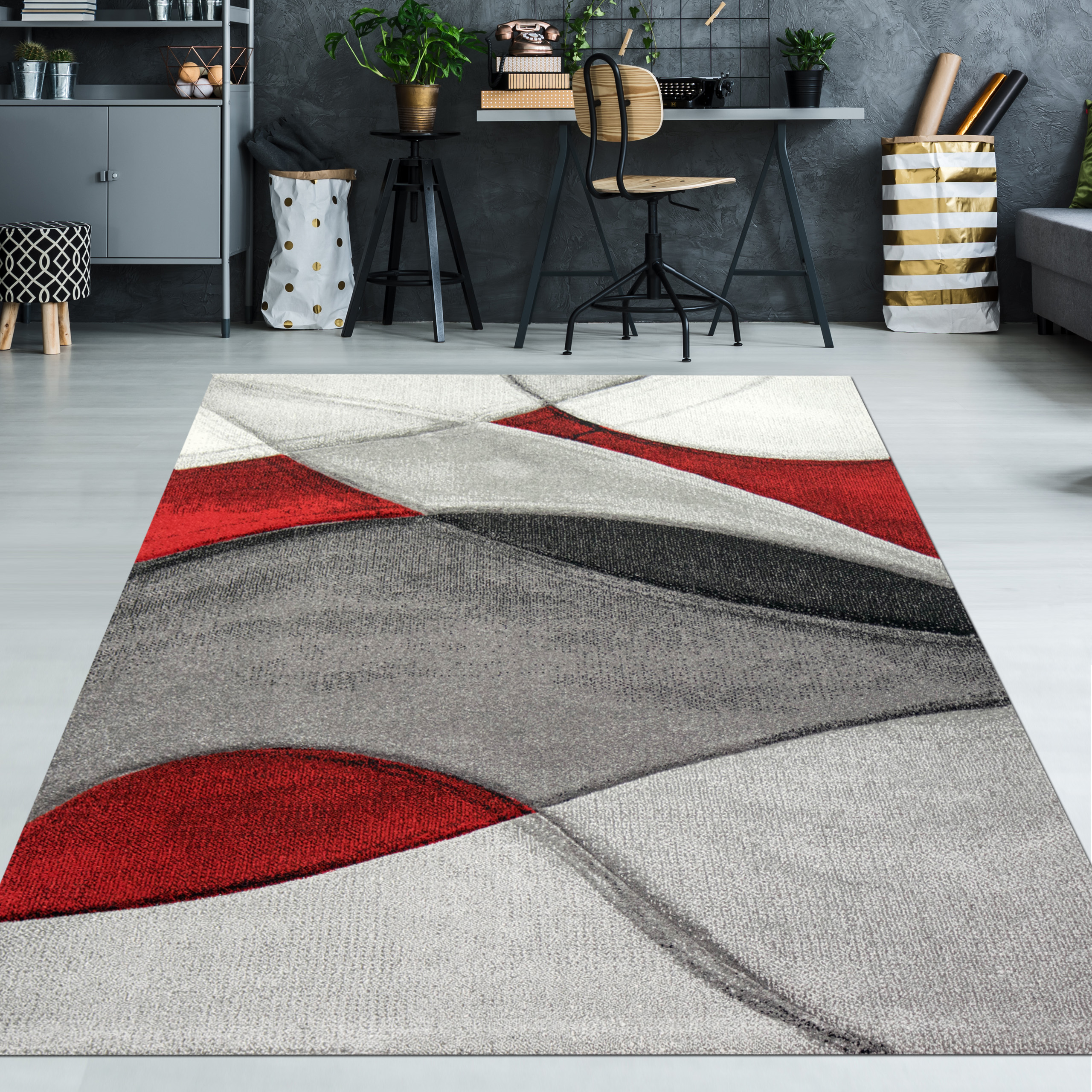 - Teppich Farbe: rot, grau, schwarz