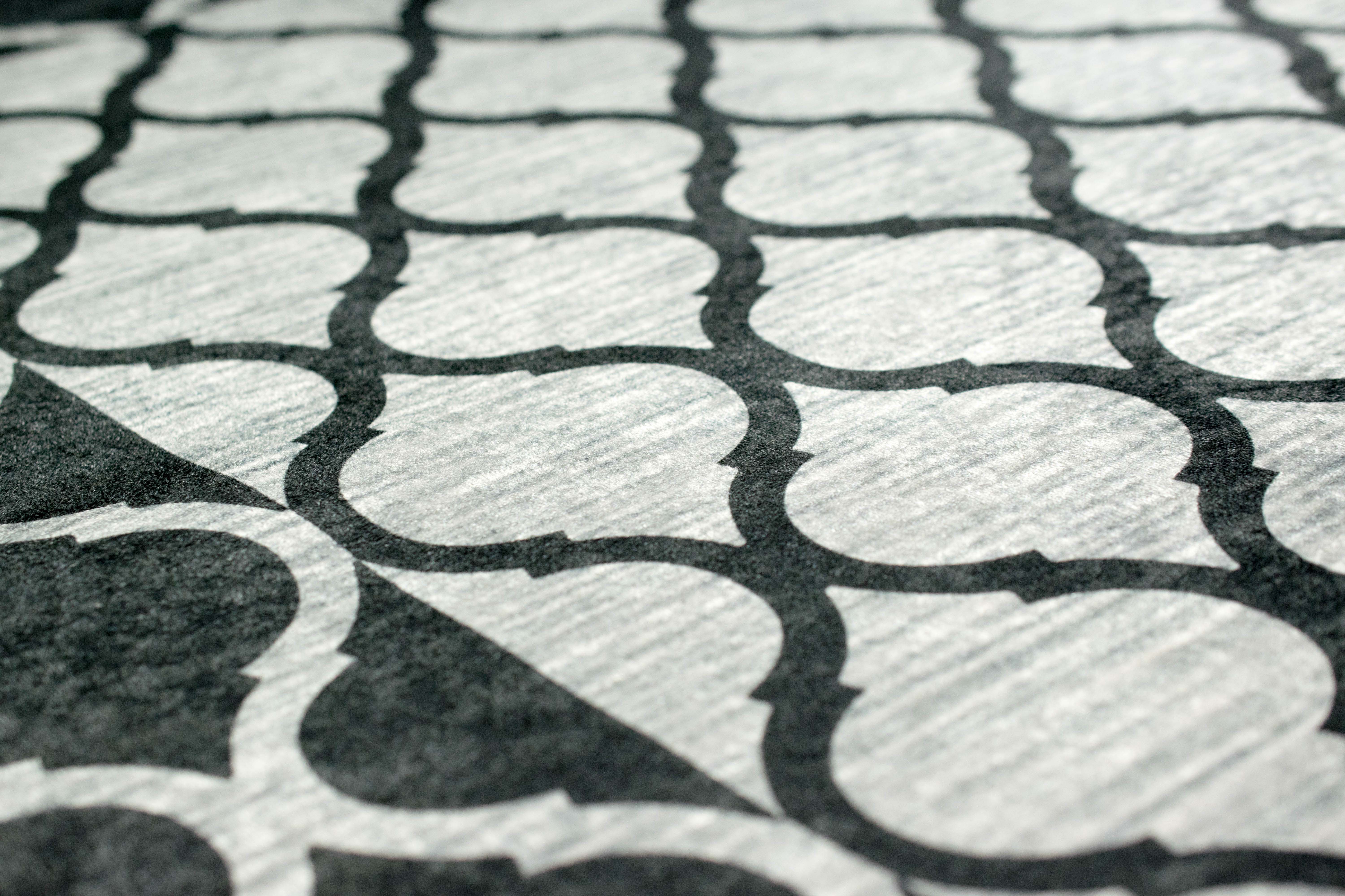 Der Teppich überzeugt durch seine schöne und grafische Musterung.