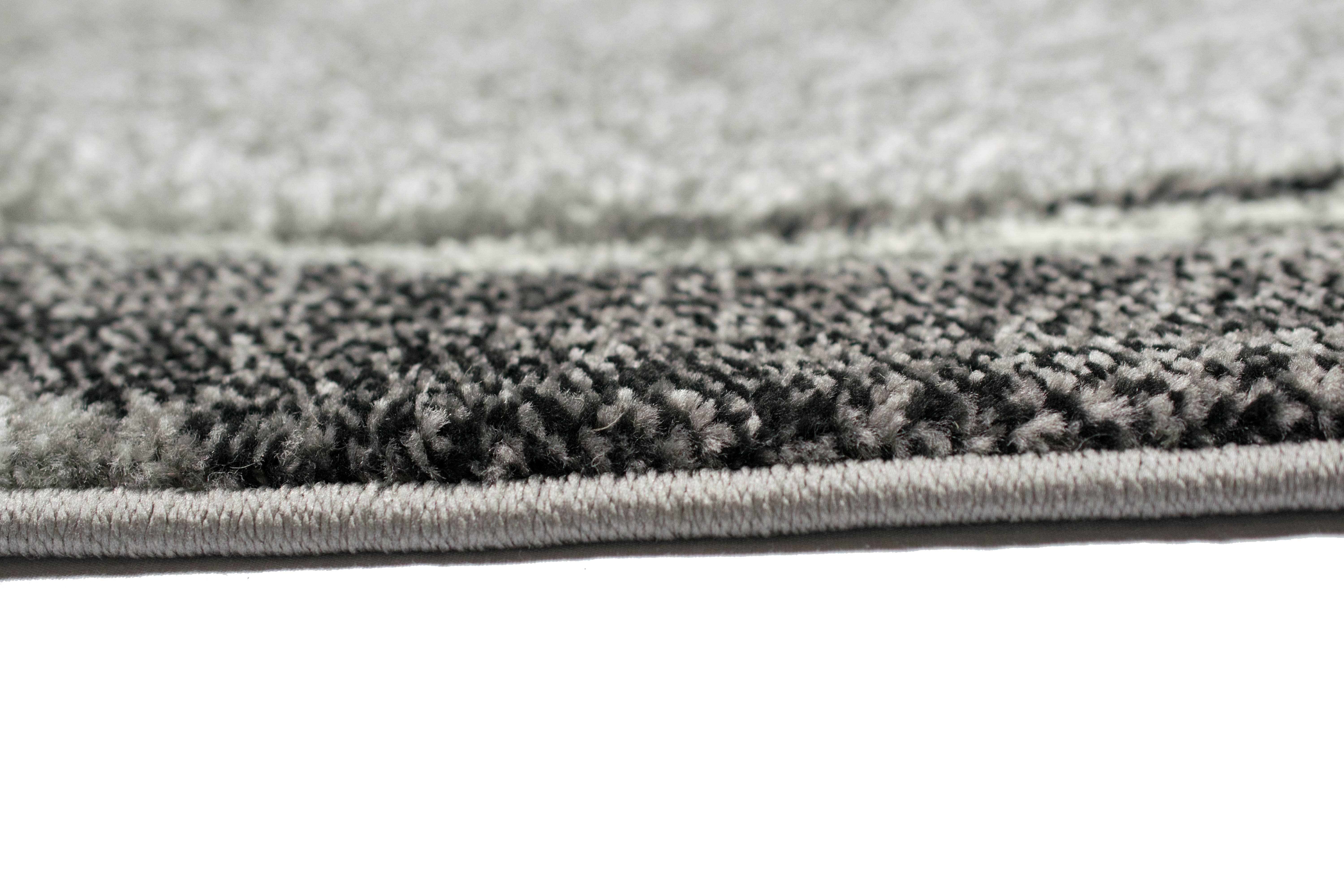 Der gewebte Teppich überzeugt durch seine schöne und grafische Musterung.